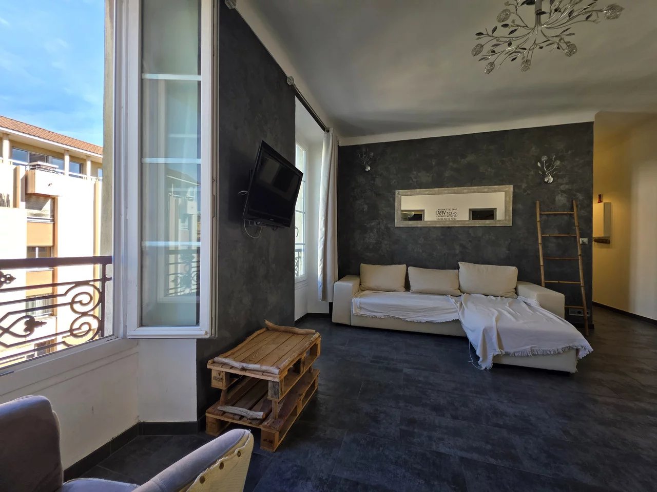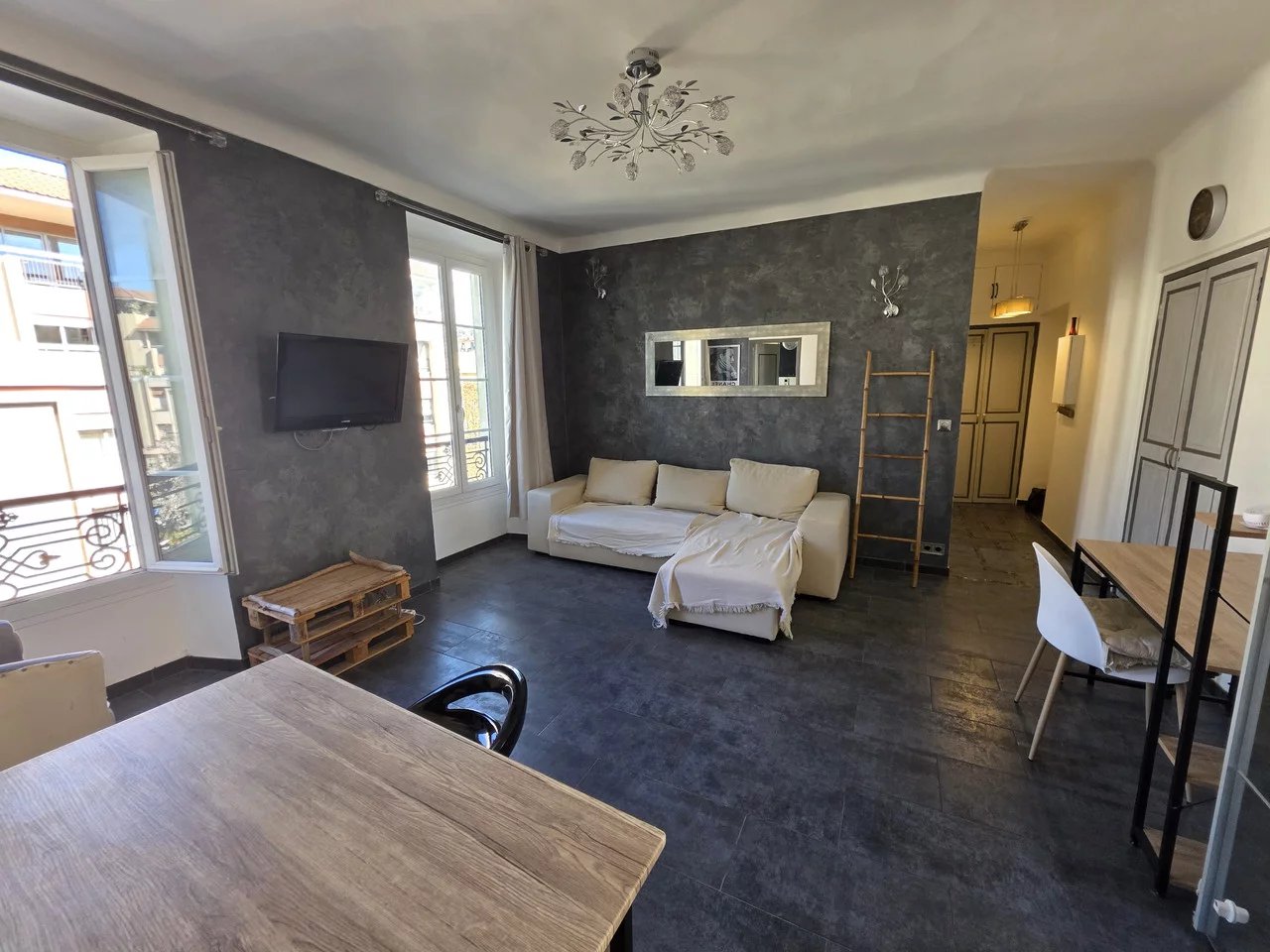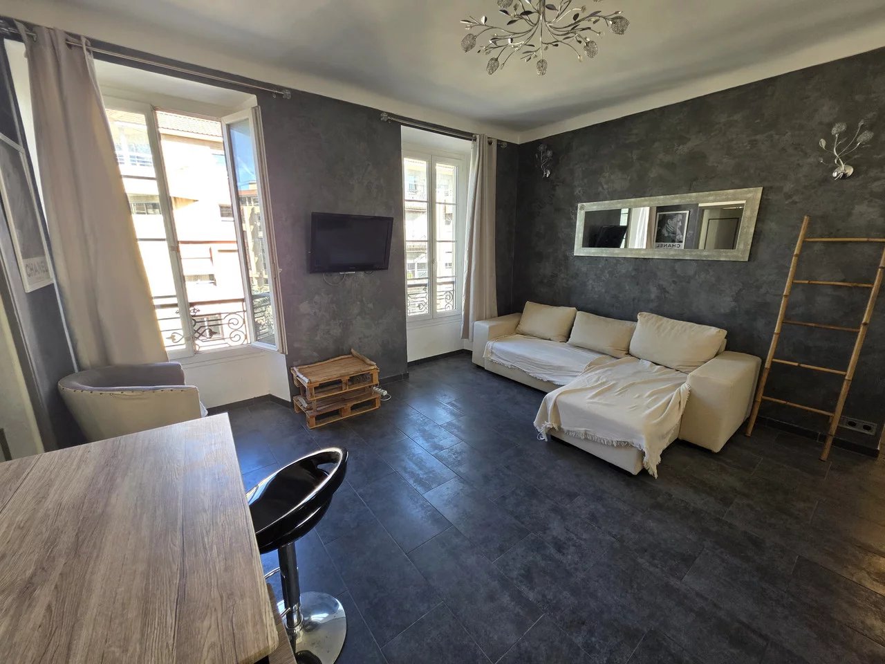 Situé dans le quartier du Port de Nice, dans un bel immeuble ancien en pierre de taille bien entretenu, cet appartement de 2 pièces de 48,50 m² se trouve au 3ᵉ étage sans ascenseur. Il se compose d’un hall d’entrée avec placard, d’un séjour lumineux, d’une chambre avec placard et rangements, d’une salle d’eau avec WC, ainsi que d’une cuisine séparée (pouvant être ouverte sur le séjour).
